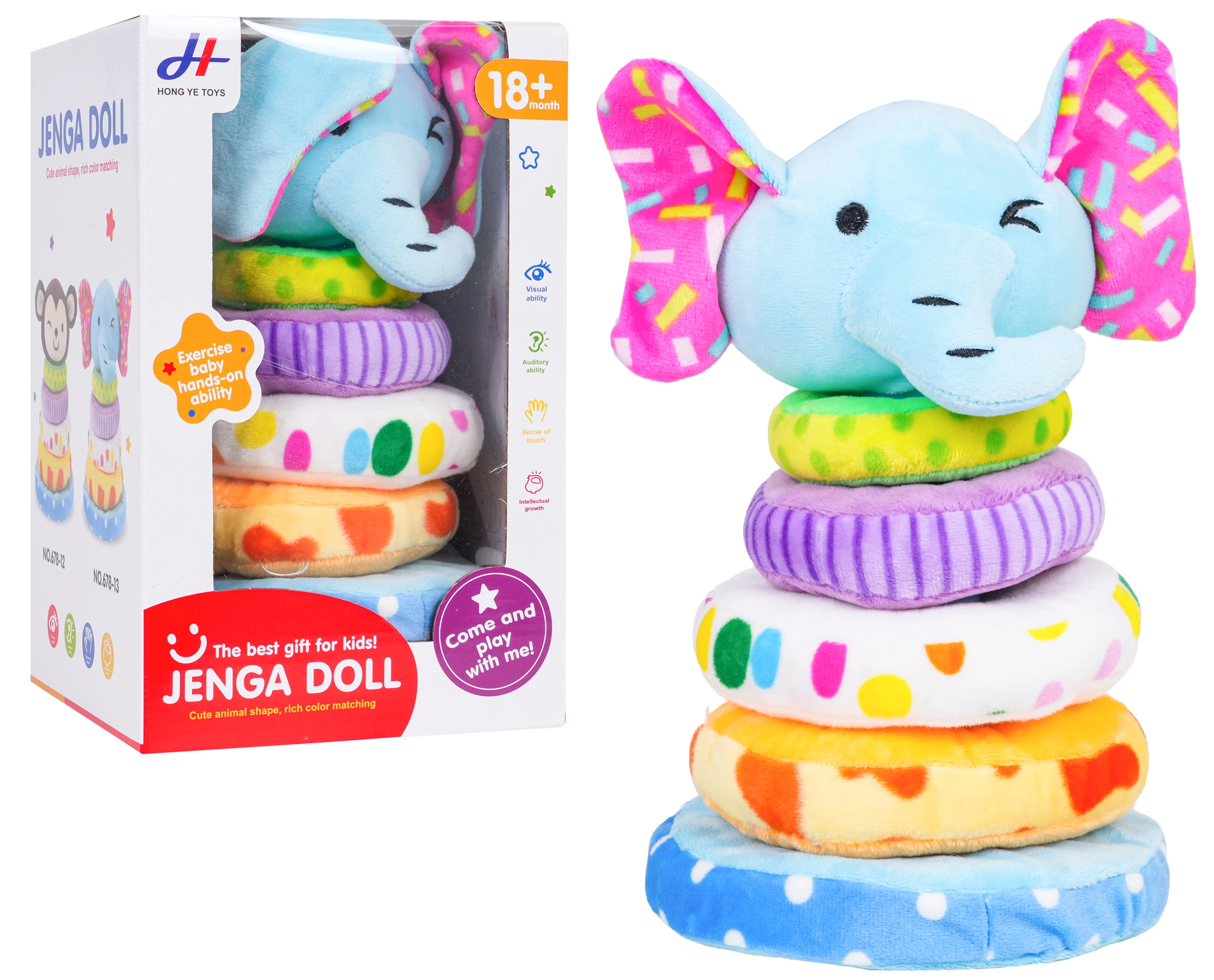 Jucăria este plăcută la atingere, ușoară și sigură pentru mâinile mici. Datorită culorilor și modelelor expresive, menține atenția copiilor pe termen lung și le stimulează curiozitatea. O alegere perfectă pentru joacă acasă și în călătorii.