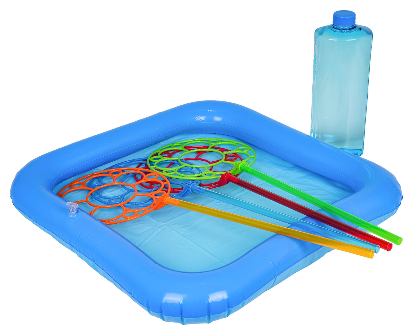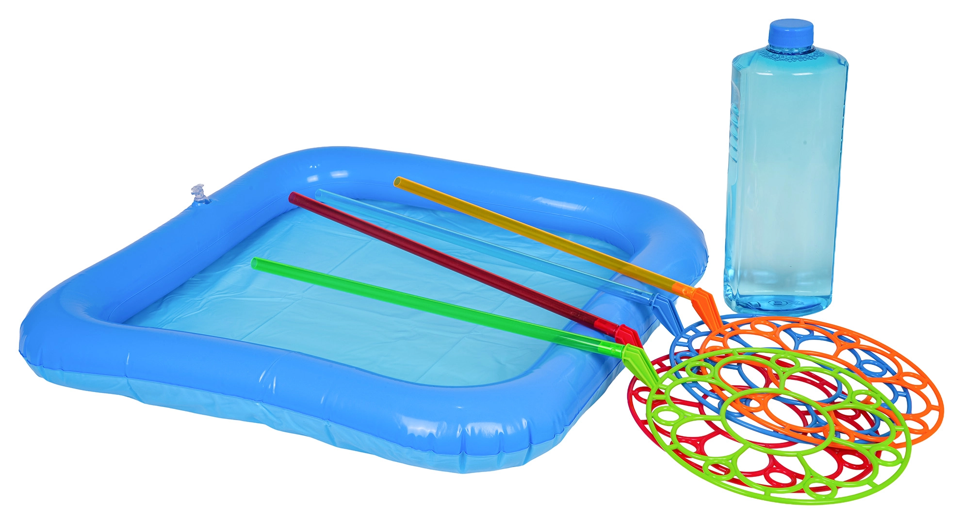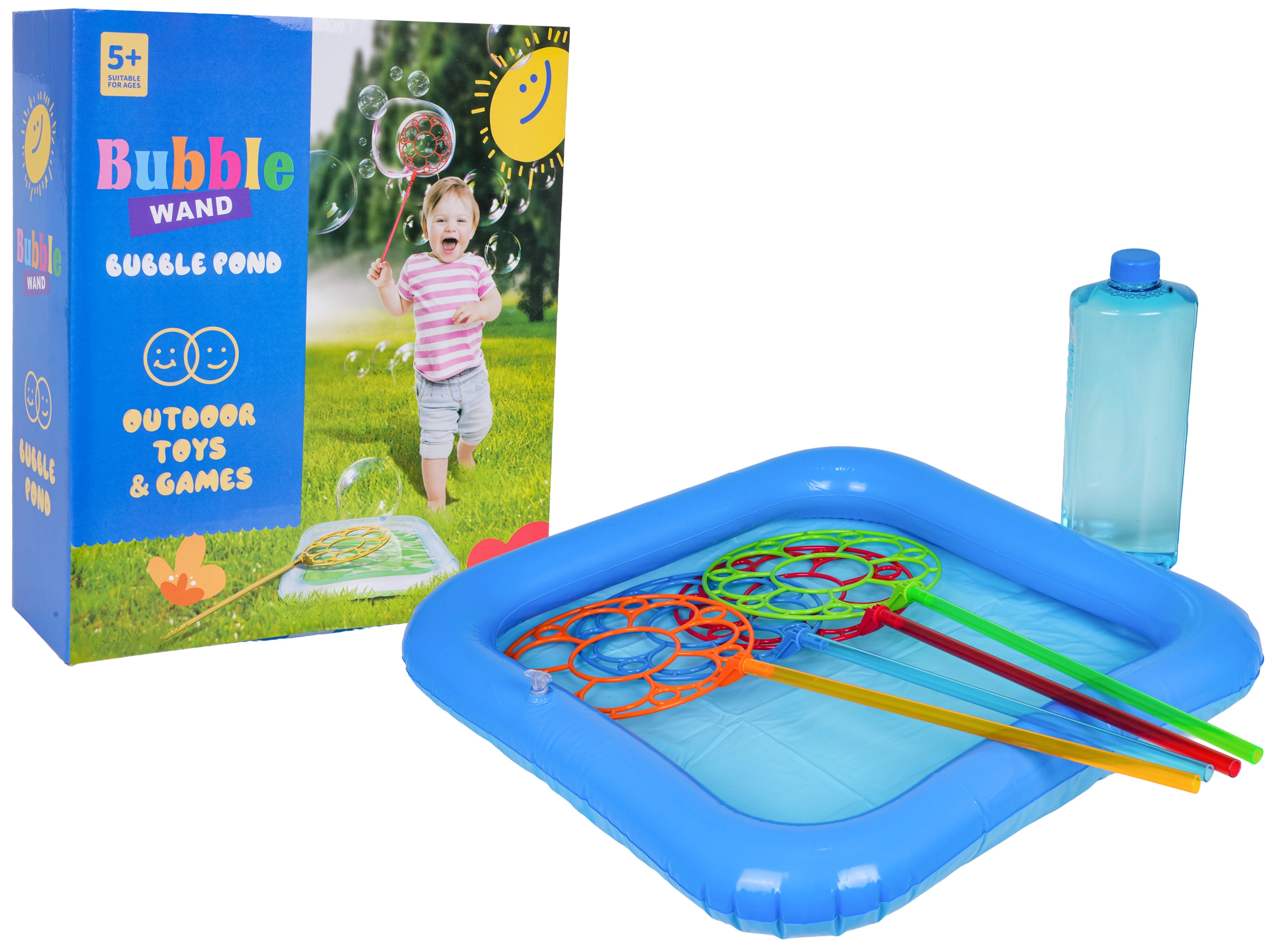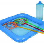 Cu acest set, copiii pot crea cu ușurință bule gigantice de săpun. Turnați soluția în piscina gonflabilă, înmuiați unul dintre inele și suflați – zâmbetele și bucuria sunt garantate. Ideal pentru evenimente de familie și jocuri cu prietenii în aer liber.
