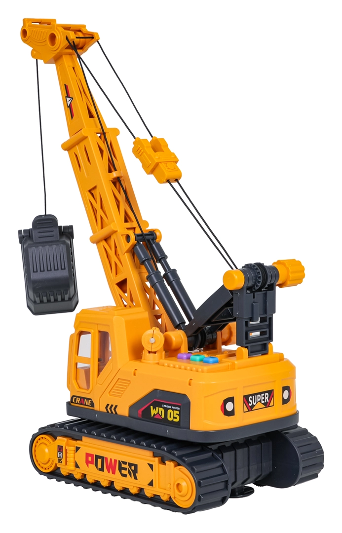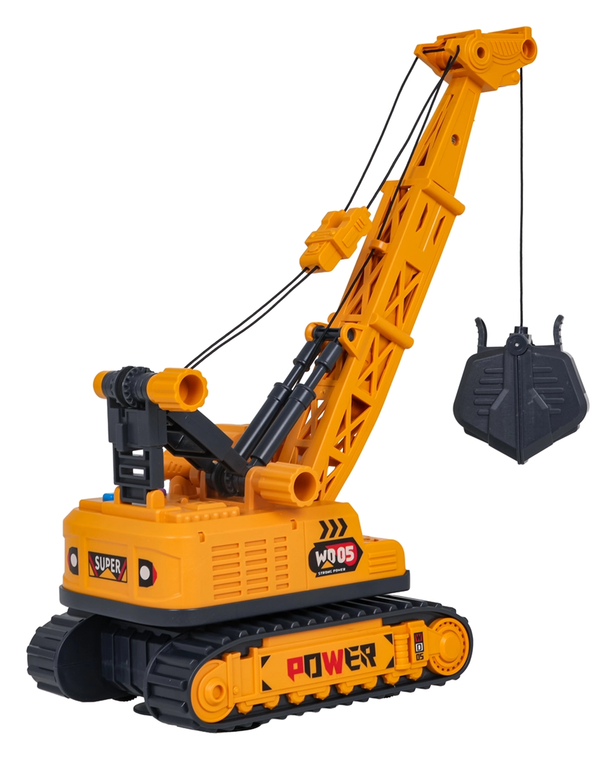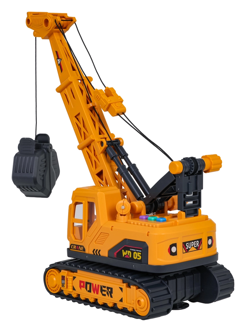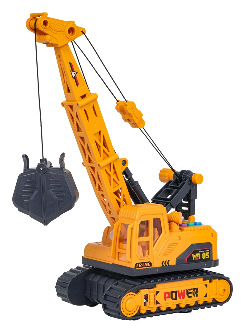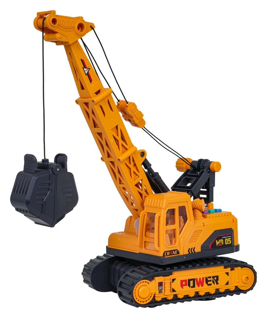 Descoperiți distracția realistă cu o macara de construcții la scară 1:16. Copiii pot controla ușor brațul și coșul cu clești, pot roti partea superioară la 360° și pot porni efectele de lumină și sunet printr-o singură apăsare de buton. Șasiul pe șenile robust și detaliile atent realizate stimulează imaginația și dezvoltă motricitatea fină.