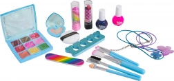 Paletă de farduri, glossuri, rujuri, lacuri de unghii, pensule, pilă și separator pentru degete – totul într-un set practic.