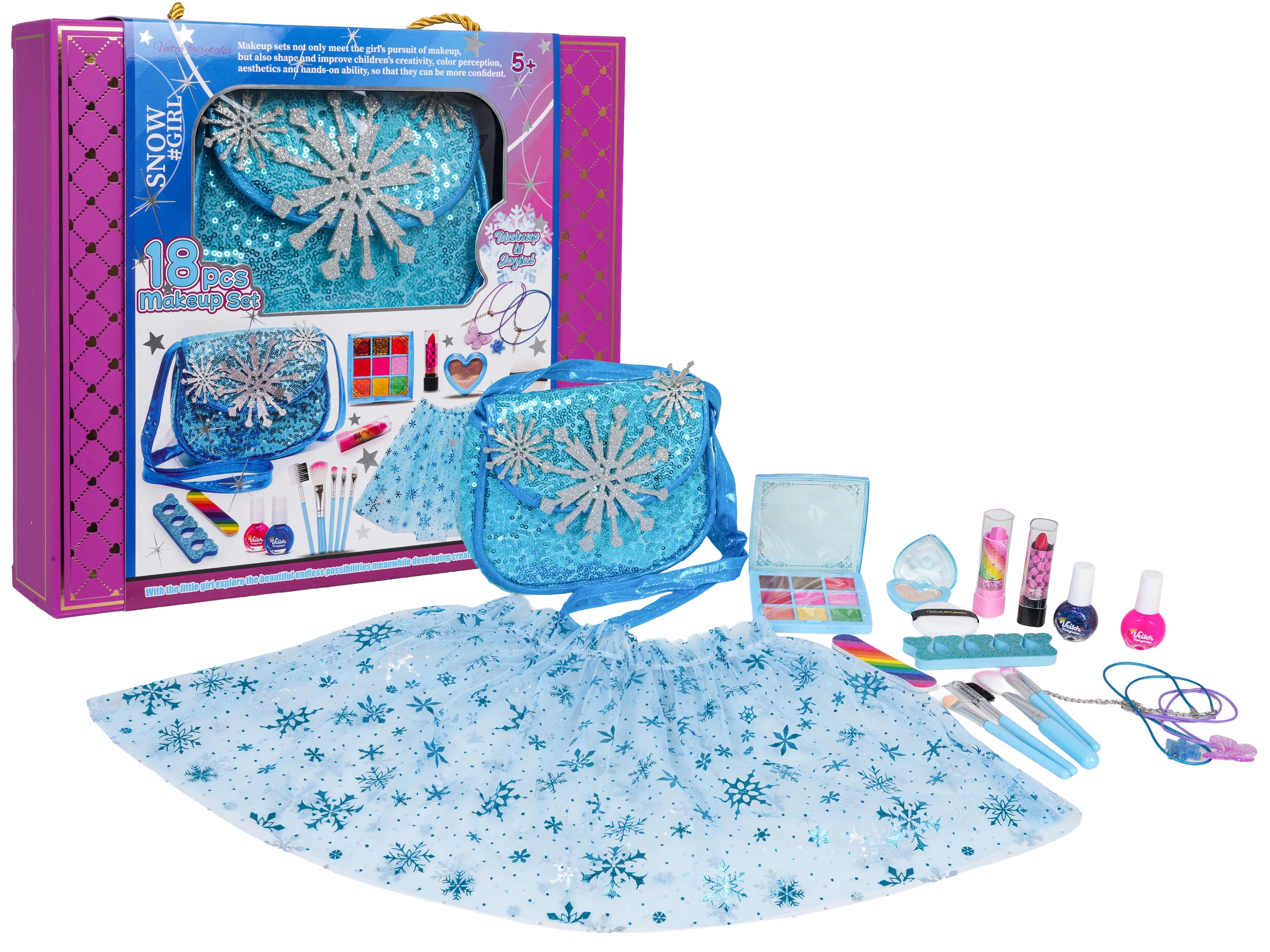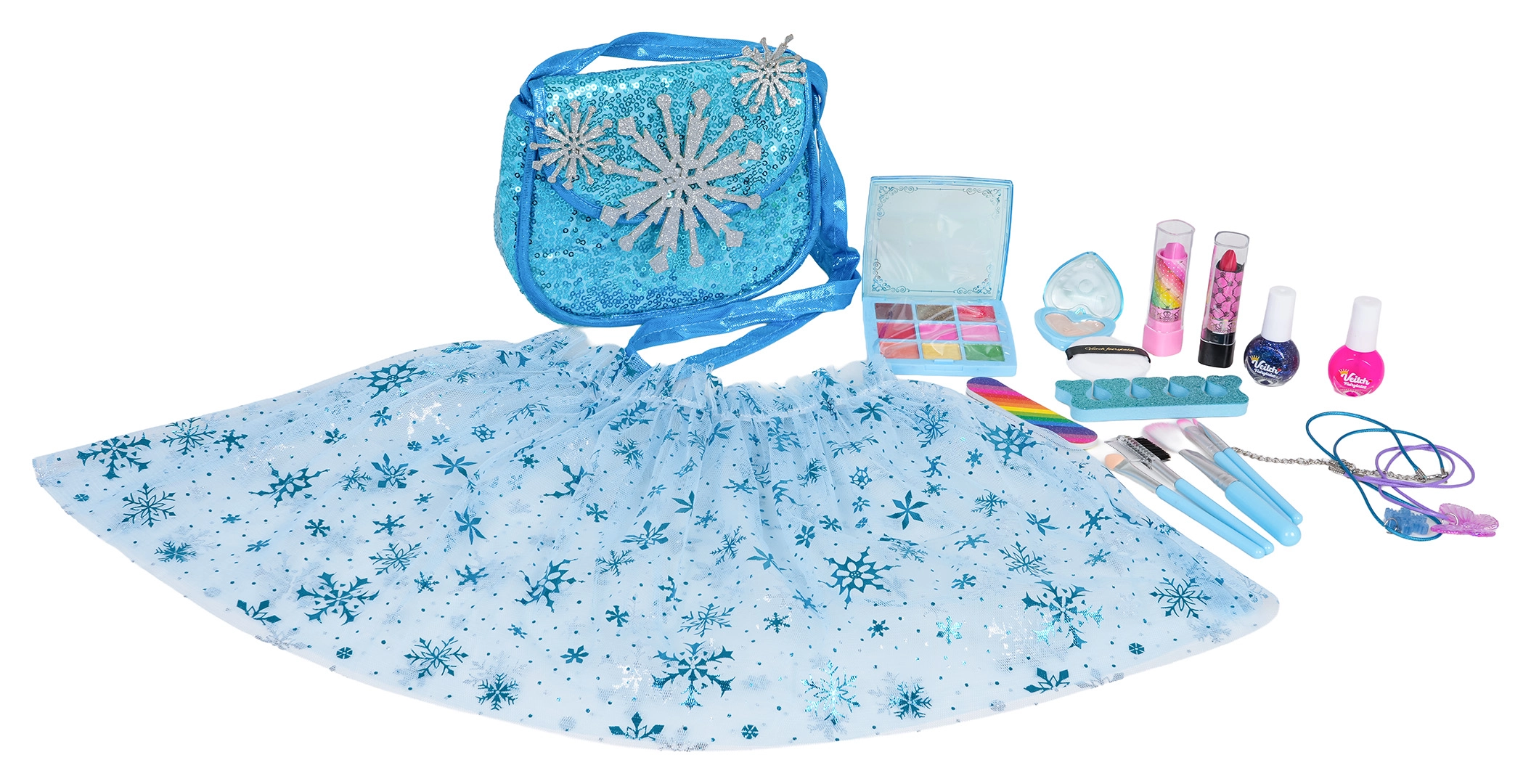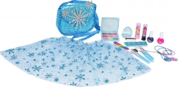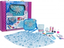 Acest set bogat pentru copii de la 5 ani stimulează imaginația, creativitatea și rolul îndrăgitei prințese a gheții. Totul este în nuanțe de albastru, cu fulgi de zăpadă și detalii sclipitoare. Datorită componentelor de make-up pentru copii, sigure și ușor de spălat, cei mici se pot juca în siguranță de-a machiajul și îngrijirea unghiilor.