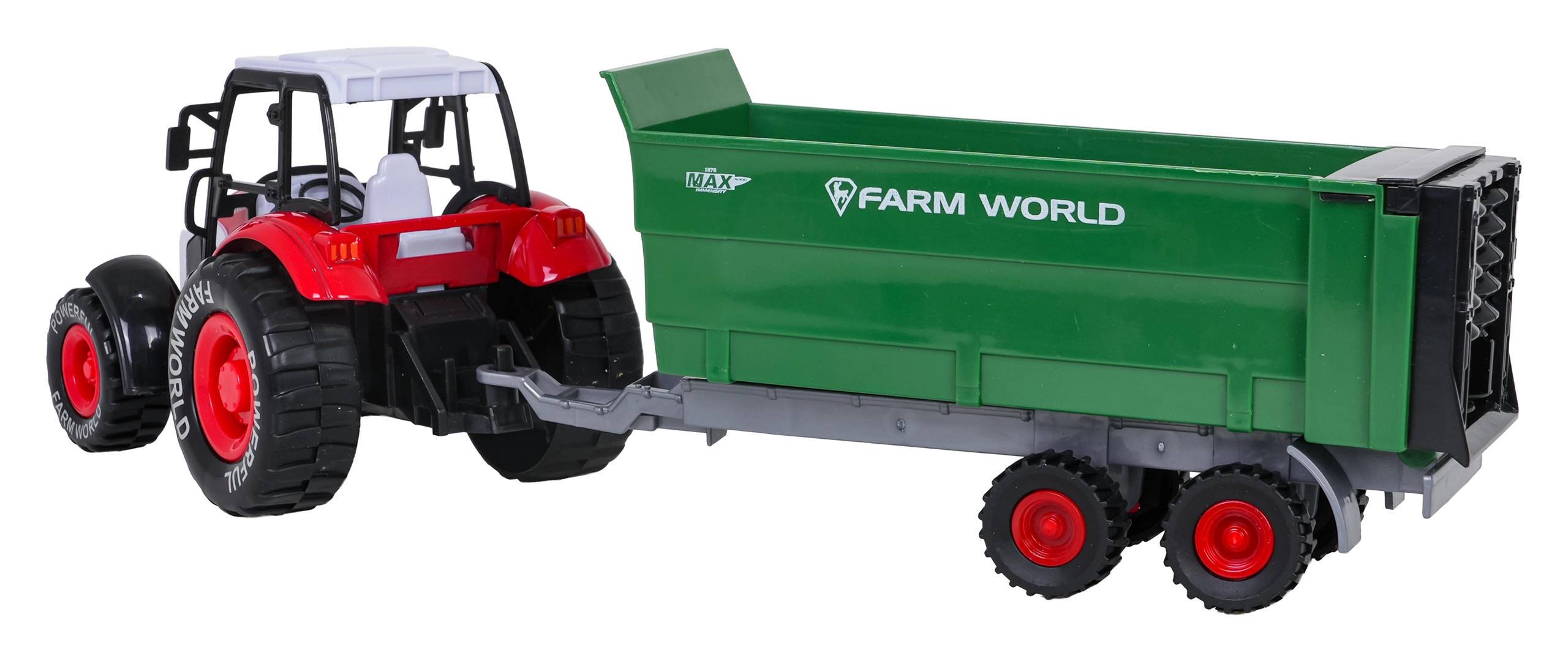 Remorca poate fi ușor detașată și folosită separat. Lateralele înalte și oblonul spate susțin încărcarea și descărcarea obiectelor mici, astfel încât copiii pot simula realist munca la fermă. Roțile cu profil pronunțat asigură o deplasare lină pe diverse suprafețe.