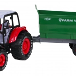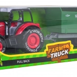 Set de tractor agricol pentru copii de la 3 ani, realizat din metal și plastic, cu aspect realist și mecanism pull-back pentru o deplasare distractivă. Remorca este detașabilă, are laterale înalte și permite transportarea și descărcarea încărcăturii. Ideal pentru joacă acasă și în aer liber.