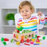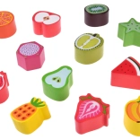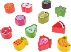 Setul include piese viu colorate în formă de fructe pentru introdus în orificiile corespunzătoare. Copiii învață culorile, formele și denumirile fructelor și își antrenează logica.