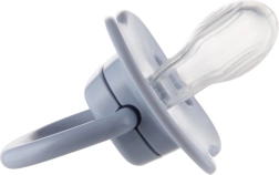 Scutul special conturat și ventilat sprijină respirația liberă pe nas și reduce riscul iritațiilor pielii. Suzeta este fermă, rezistentă la deformare, ușor de menținut curată și nu conține BPA. Mânerul practic permite oferirea comodă și prinderea lanțului sau a unei panglici, pentru a evita căderea suzetei pe podea.