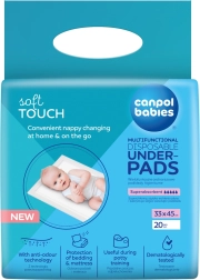 Șervețelele de unică folosință Canpol babies oferă un suprafață curată și igienică pentru schimbat acasă și în călătorii. Au un miez superabsorbant, strat inferior impermeabil împotriva scurgerilor și o suprafață moale, delicată cu pielea bebelușului. Datorită tehnologiei care neutralizează mirosurile neplăcute, mediul rămâne proaspăt. Ideale pentru cărucior, pătuț, vizite la medic și pentru învățarea la oliță. Pachet de 20 bucăți, dimensiune 33 × 45 cm.