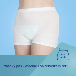Datorită materialului respirant, nu irită pielea și asigură circulația liberă a aerului. Chiloții mențin în mod fiabil absorbantul postpartum la locul său, contribuind la igienă și la o vindecare mai rapidă după naștere naturală sau cezariană. Sunt reutilizabili și ușor de întreținut, pot fi spălați la până la 60 °C.