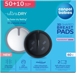 Canpol babies Ultra Dry 3D sunt tampoane de unică folosință, modelate pentru sutien, concepute pentru mamele în sarcină târzie și în perioada de alăptare. Cele șapte straturi de protecție și miezul ultraabsorbant blochează rapid umezeala, în timp ce materialele respirabile mențin pielea confortabilă, fără iritații. Designul subțire (doar 1,3 mm) asigură discreție maximă chiar și sub lenjeria strâmtă.