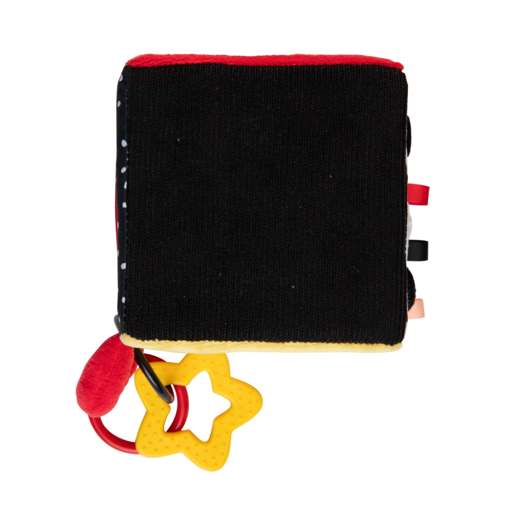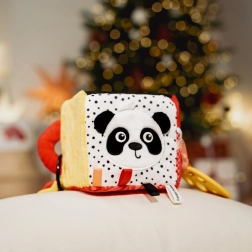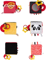 Cubul senzorial BabiesBoo este ușor, moale și ideal pentru mânuțele mici ale bebelușului. Modelele contrastante alb-negru și colorate stimulează vederea, materialele foșnitoare și zornăitoarea cu sunet delicat dezvoltă auzul, iar texturile variate cu bucle încurajează percepția tactilă. Oglinda sigură sprijină autocunoașterea și coordonarea mână-ochi.