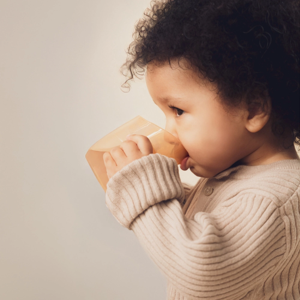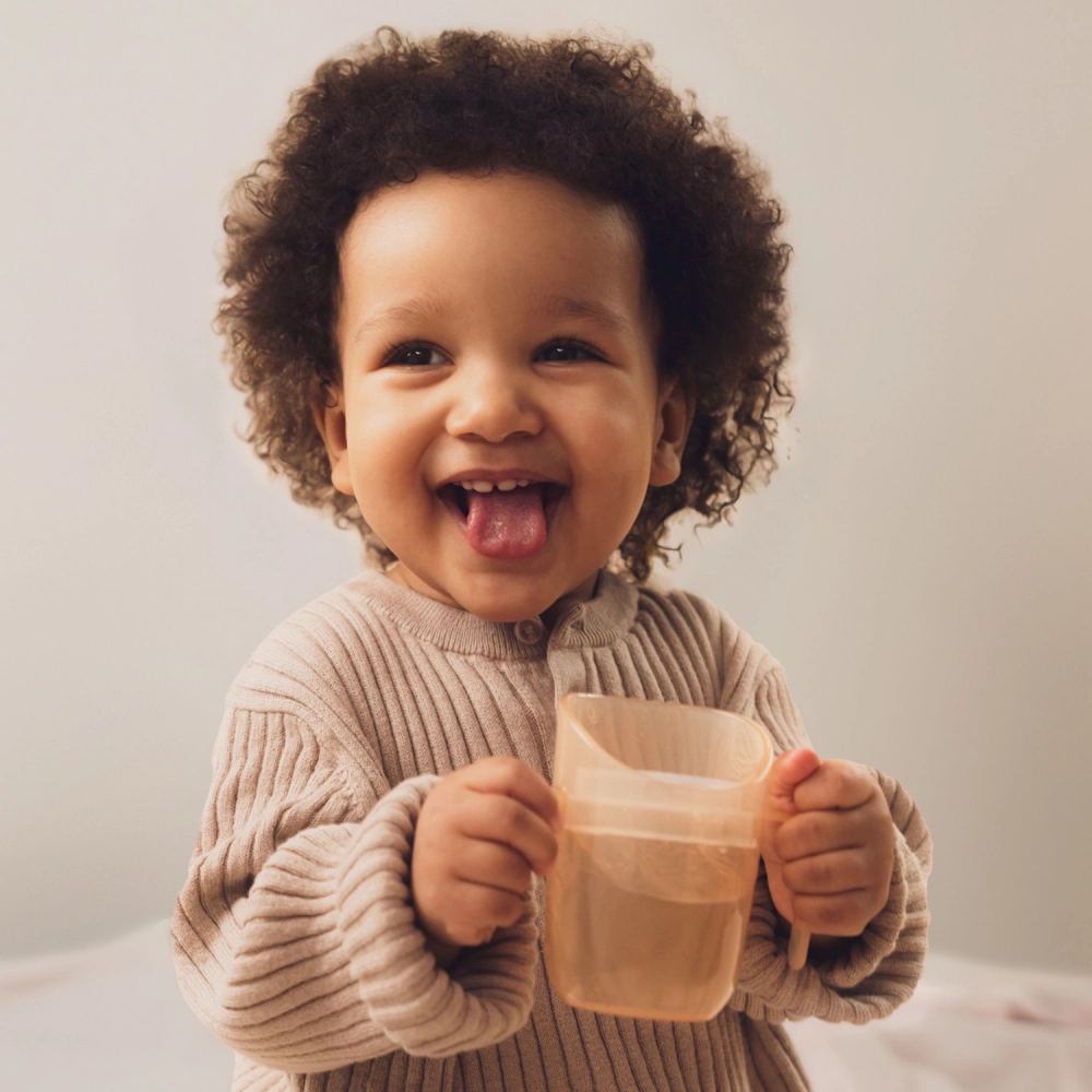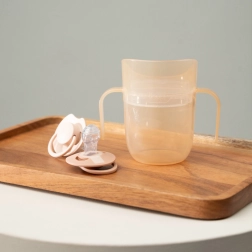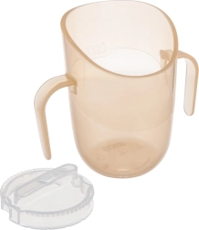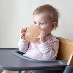 Construcția ușoară, mânerele duble profilate și volumul mai mic pentru început (aprox. 130 ml cu inserție) facilitează trecerea de la biberon. Când copilul este pregătit, îndepărtați pur și simplu inserția și obțineți o cană deschisă cu volum de 150 ml – un singur produs care chiar crește odată cu copilul.