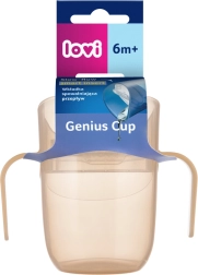 Cana de antrenament LOVI Genius Nude este concepută în colaborare cu logopezi neurologi pentru ca copilul să exerseze în siguranță băutul ca dintr-o cană deschisă. Inserția din interior încetinește fluxul lichidului și reduce riscul de înec. Datorită pereților transparenți, copilul vede nivelul, nu trebuie să își dea prea mult capul pe spate, iar părinții pot monitoriza cantitatea băută.