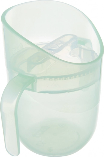 Construcția ușoară, cele două toarte late și dimensiunea compactă o fac o alegere perfectă pentru începători. După ce copilul stăpânește tehnica corectă, scoateți pur și simplu inserția, iar cana devine o cană deschisă cu volum de 150 ml – un singur produs care chiar crește odată cu copilul.