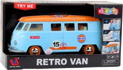 Dubă retro stilată pentru copii, care aduce atmosfera vehiculelor clasice într-o nuanță elegantă de albastru. Oferă uși care se deschid, efecte luminoase și sonore realiste și o execuție durabilă din materiale sigure. Ideală pentru dezvoltarea imaginației și motricității la joacă, atât în interior, cât și afară.