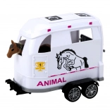 Remorca albă cu două axe, cu imprimeu cu cal, poate fi detașată cu ușurință. În interior se află o figurină de cal pentru joacă separată.