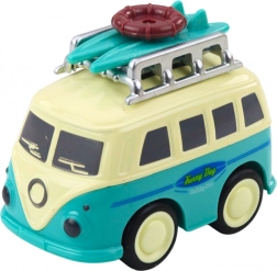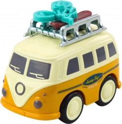 Descoperă distracția pe patru roți cu simpatica rulotă inspirată de clasicele autoutilitare turistice. Datorită mecanismului de fricțiune, vehiculul pornește sprinten după o ușoară împingere, iar bagajul mobil de pe acoperiș adaugă dinamism deplasării. Dimensiunea compactă încape în rucsac, astfel încât copilul își poate trăi poveștile de călătorie oriunde.
