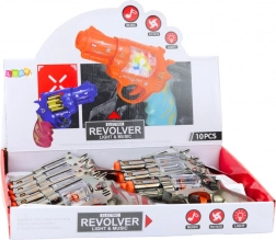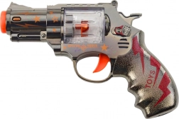 Un revolver distractiv pentru copii, ideal pentru micii aventurieri, oferă un aspect realist și efecte dinamice. La apăsarea trăgaciului se activează efecte luminoase și sonore, iar în încărcător bilele se mișcă, imitând fidel funcționarea unei arme reale. Construcția ușoară și sigură din plastic de calitate asigură prindere confortabilă și joacă în siguranță atât în interior, cât și în aer liber.