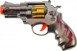 Un revolver distractiv pentru copii, pentru micii eroi, oferă efecte luminoase și sonore, tambur rotativ și aspect realist. Este fabricat din plastic rezistent, se potrivește confortabil în mână și, datorită dimensiunilor compacte, este ușor de manevrat chiar și de copiii mai mici.