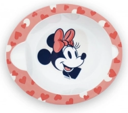 Set practic pentru copii pentru cuptorul cu microunde, cu bol și linguriță, în design DISNEY Minnie, pentru copii de la 10 luni. Bolul poate fi încălzit la microunde, materialul este fără BPA, iar întregul set este ușor și simplu de utilizat pentru mesele de zi cu zi.