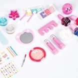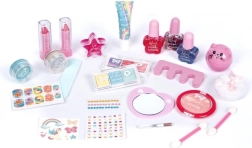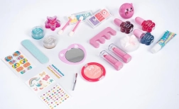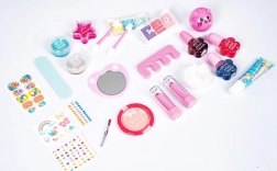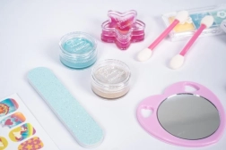 Setul stimulează imaginația și motricitatea fină. Copiii pot încerca în siguranță machiajul de bază și manichiura într-o variantă colorată și prietenoasă.