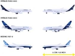 Descoperă distracția cu un model realist de avion cu lungimea de 11 cm. Acest model metalic rezistent oferă copiilor și colecționarilor calitate superioară a execuției, dimensiune compactă și 3 variante atrăgătoare pentru și mai multă distracție.