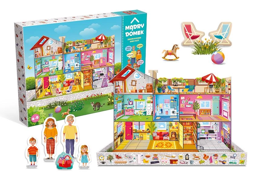 Jocul educativ Granna Domek 3D îmbină construcția creativă cu o varietate bogată de sarcini. Copiii construiesc o căsuță tridimensională, plasează în ea 27 de piese de mobilier și, în timpul jocului, își dezvoltă vocabularul, logica și motricitatea fină. Activitățile sunt concepute pentru a fi distractive, clare și motivante pentru copiii de la 4 la 8 ani.