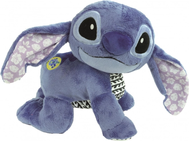 Pluș interactiv DISNEY BABY Stitch de la Clementoni. Mișcare, melodii, sunete de animale și vocea lui Stitch susțin motricitatea și dezvoltarea de la 6 luni.