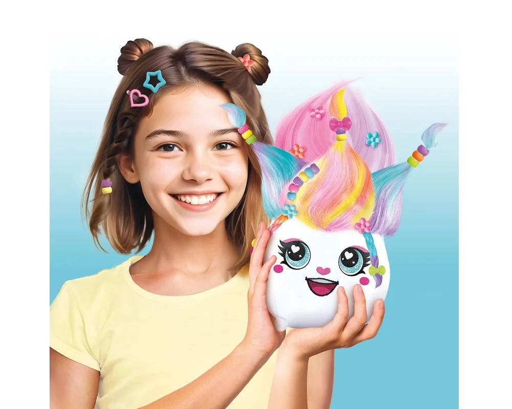 Setul include și o gamă bogată de accesorii pentru păr, datorită cărora copiii pot realiza diverse coafuri – de la împletituri până la clame decorative. Această jucărie interactivă stimulează imaginația, concentrarea și îndemânarea și este un cadou excelent pentru micii creatori.