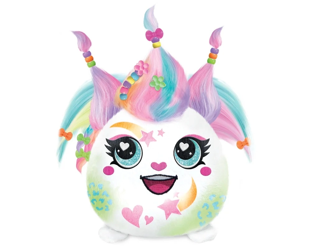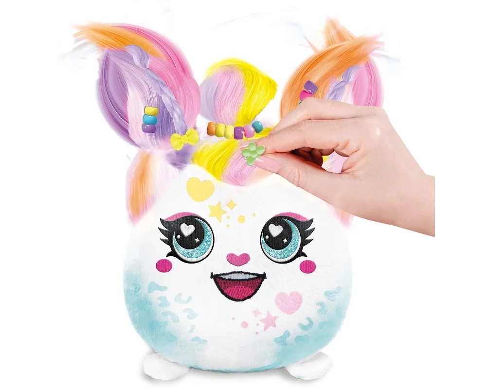 Clame, elastice, mărgele și un pieptăneț susțin crearea împletiturilor, onduleurilor și a detaliilor decorative. Coafatul este distractiv, iar plușul moale invită la alint.