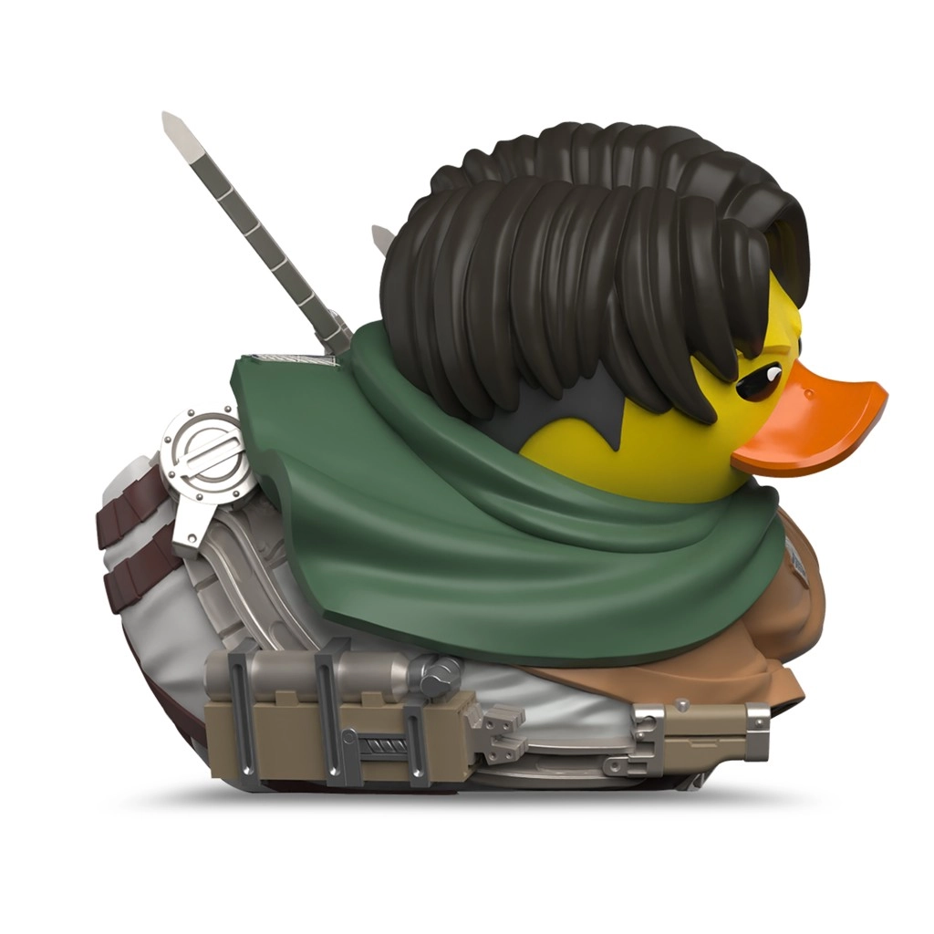 Această rățușcă de colecție TUBBZ stilizată îi aduce fanilor Attack on Titan îndrăgitul căpitan Levi într-o interpretare „duck”. Detalii fidele precum mantia verde, emblema de pe jachetă și lamele duble subliniază autenticitatea licenței oficiale și vor bucura orice fan și colecționar de ediții limitate.