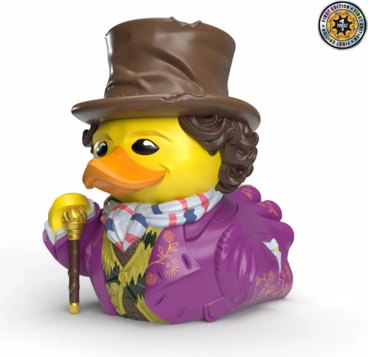 Această rățușcă stilată din seria TUBBZ îmbină personajul cult Willy Wonka cu un design jucăuș de rață de cauciuc. Se remarcă prin execuția precisă a detaliilor, vopsirea accentuată și elementele iconice precum jobenul maro, haina mov și bastonul. Fiecare piesă face parte dintr-o serie limitată numerotată și este plasată într-un tub rezistent pentru expunere, care protejează și prezintă excelent colecția ta.