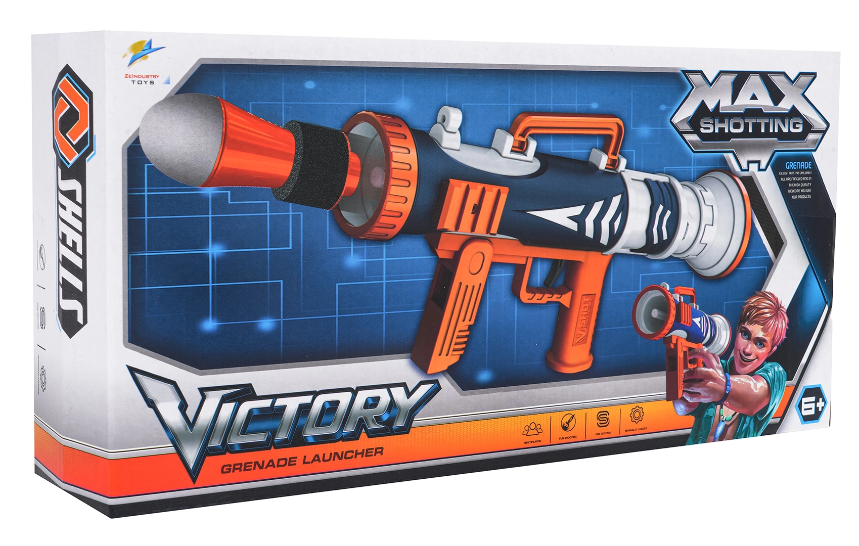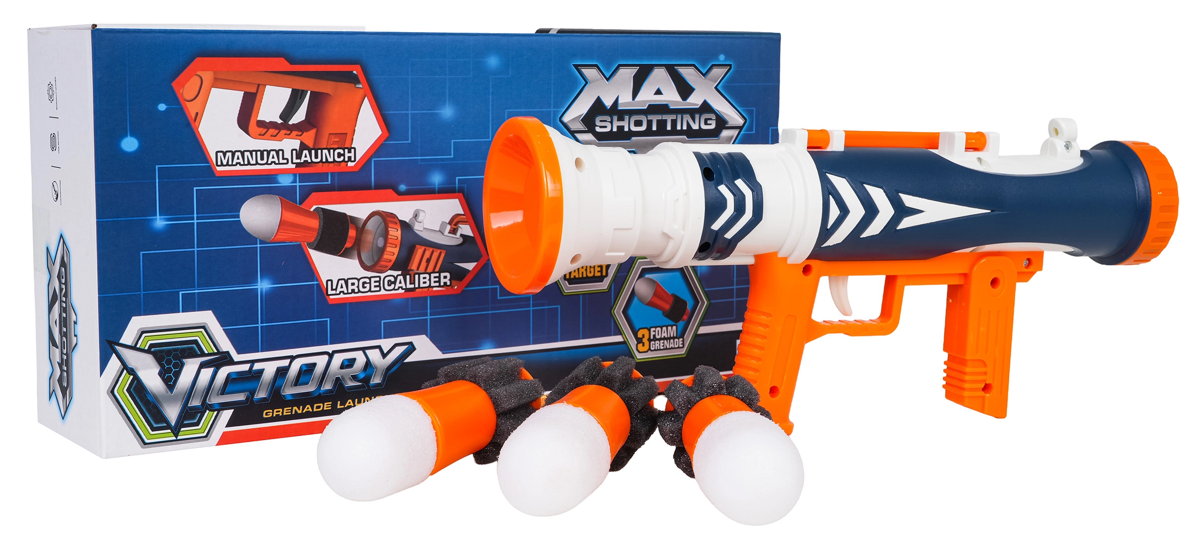 Jucăria este fabricată din materiale de calitate, sigure pentru copii și nu necesită baterii, fiind mereu gata de joacă. În pachet găsiți lansatorul și trei proiectile mari din spumă pentru distracție imediată.