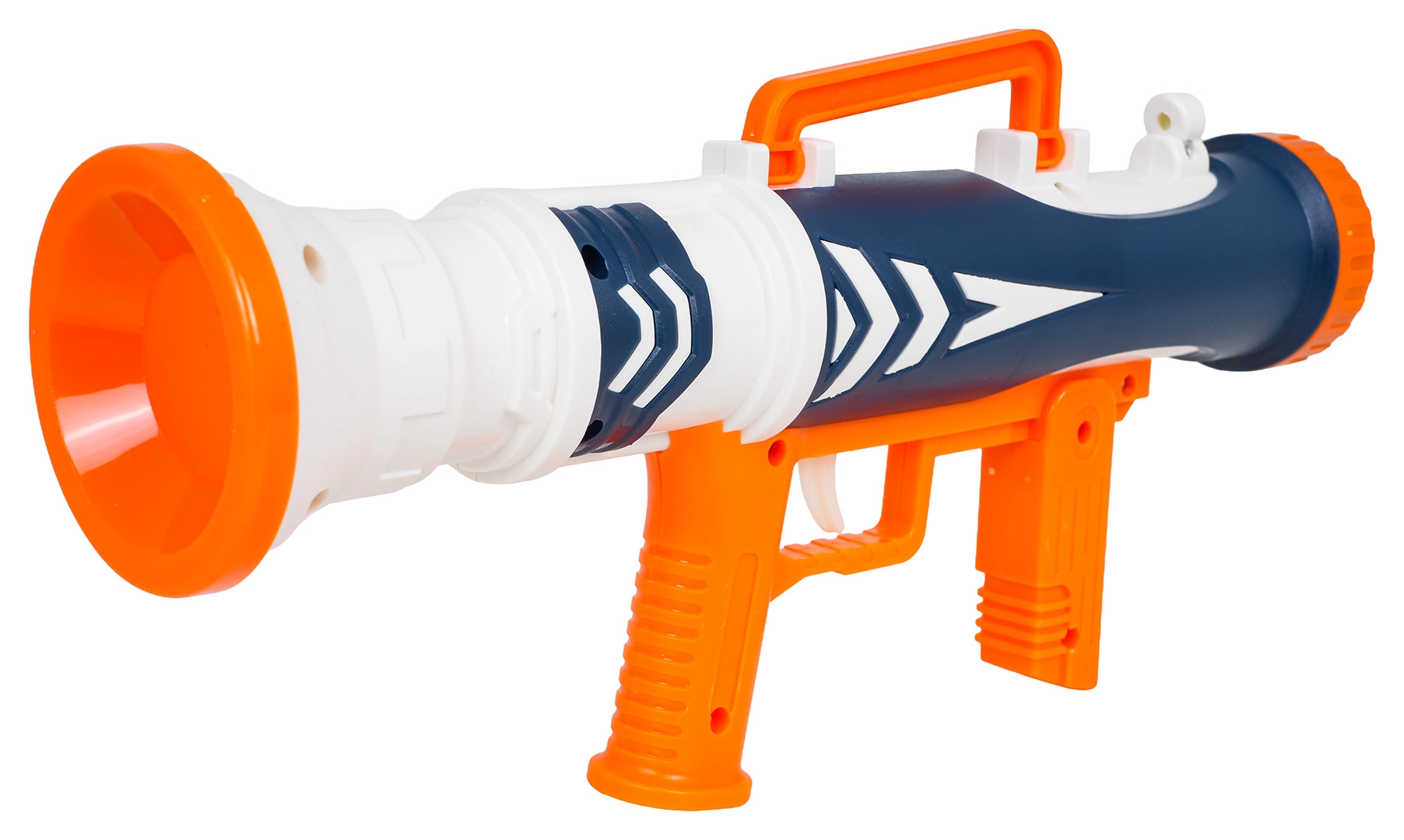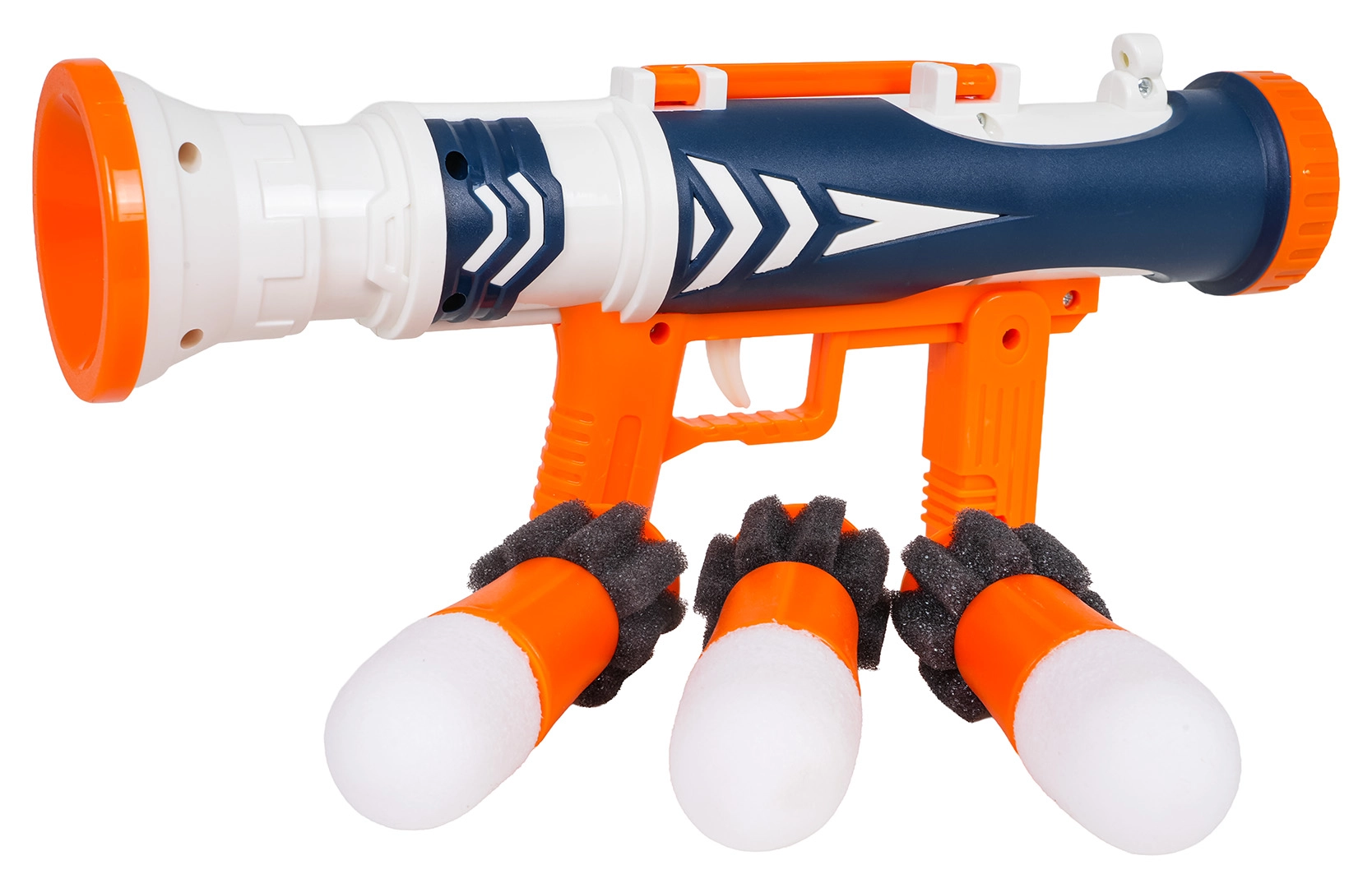 Țeava lată este concepută pentru proiectile mari din spumă, care zboară lin și în siguranță – excelent pentru concursuri de precizie.