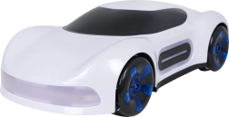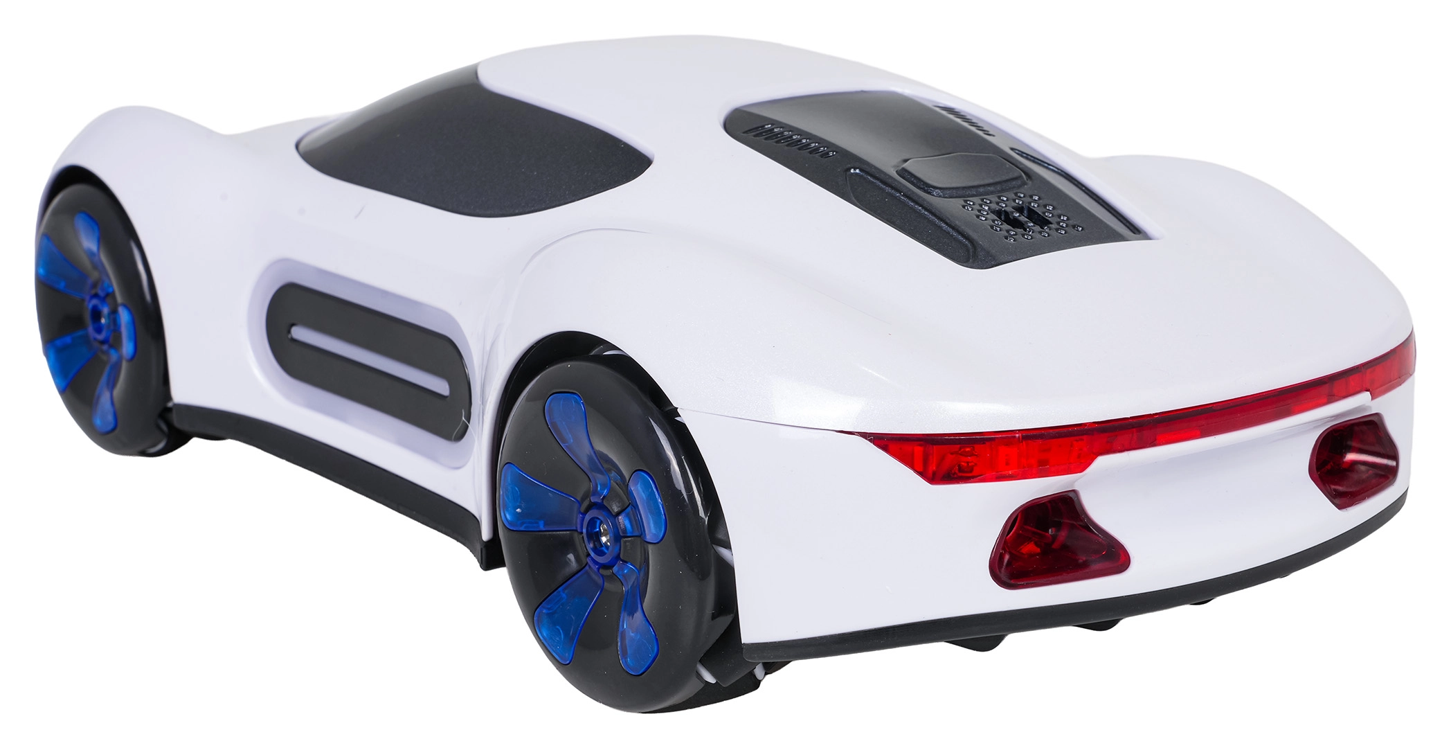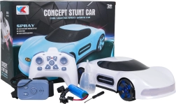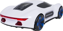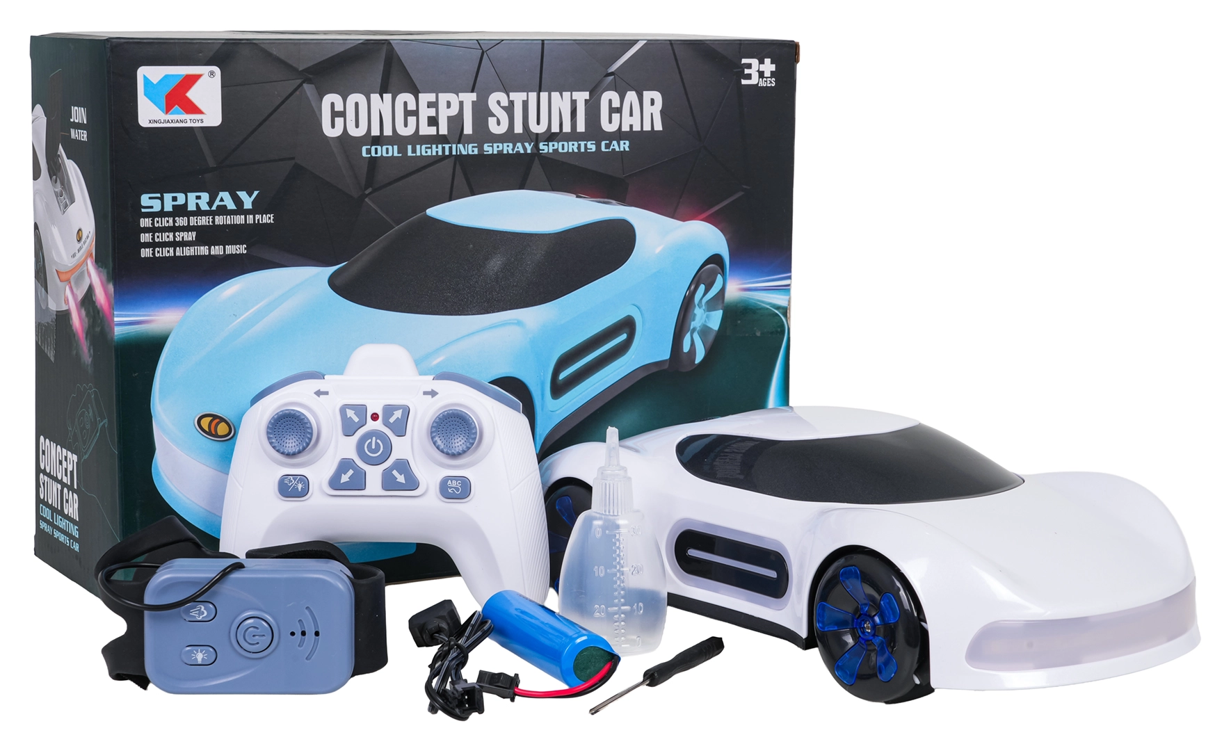 Mașină RC futuristă pentru copii de la 3 ani, cu efect de fum după umplerea rezervorului de apă, iluminare LED a roților și caroseriei și control 2,4 GHz atât prin telecomandă clasică, cât și prin gesturi pe ceasul-brățară. Poate derapa, se deplasează în toate direcțiile și se rotește la 360°.