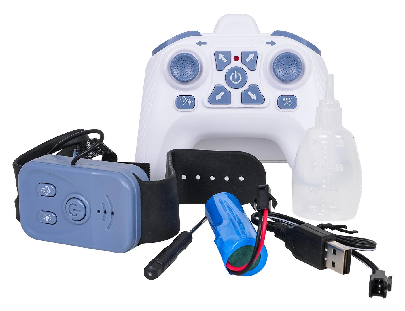- mașină RC, ceas-brățară, telecomandă, acumulator 3,7 V, cablu USB, pipetă pentru apă, șurubelniță, manual