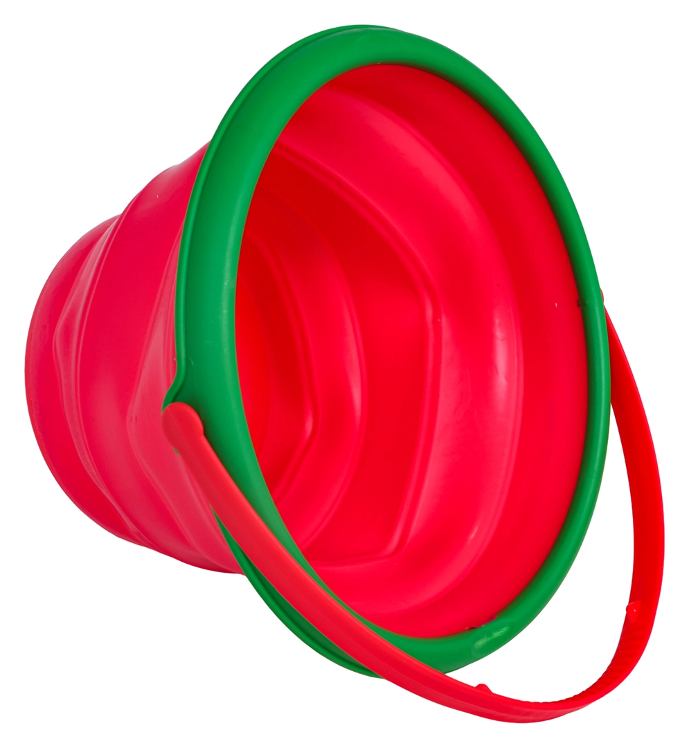 Găleata se pliază într-o formă plată, se transportă ușor și rămâne încăpătoare și stabilă după desfacere.