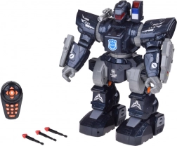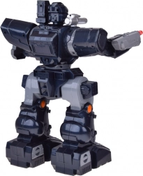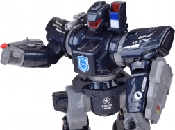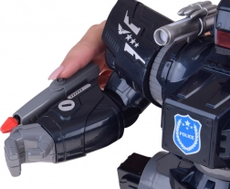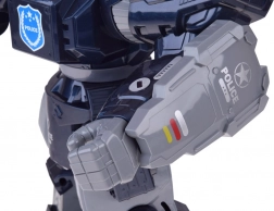 Pune în serviciu un apărător futurist al ordinii publice. Robotul RC de poliție în combinație albastru închis–gri, cu embleme POLICE, impresionează prin construcția robustă, brațele mobile și echiparea de pe umeri. Controlul este intuitiv datorită telecomenzii clare – robotul se deplasează înainte/înapoi, se rotește și dansează însoțit de lumini și muzică.