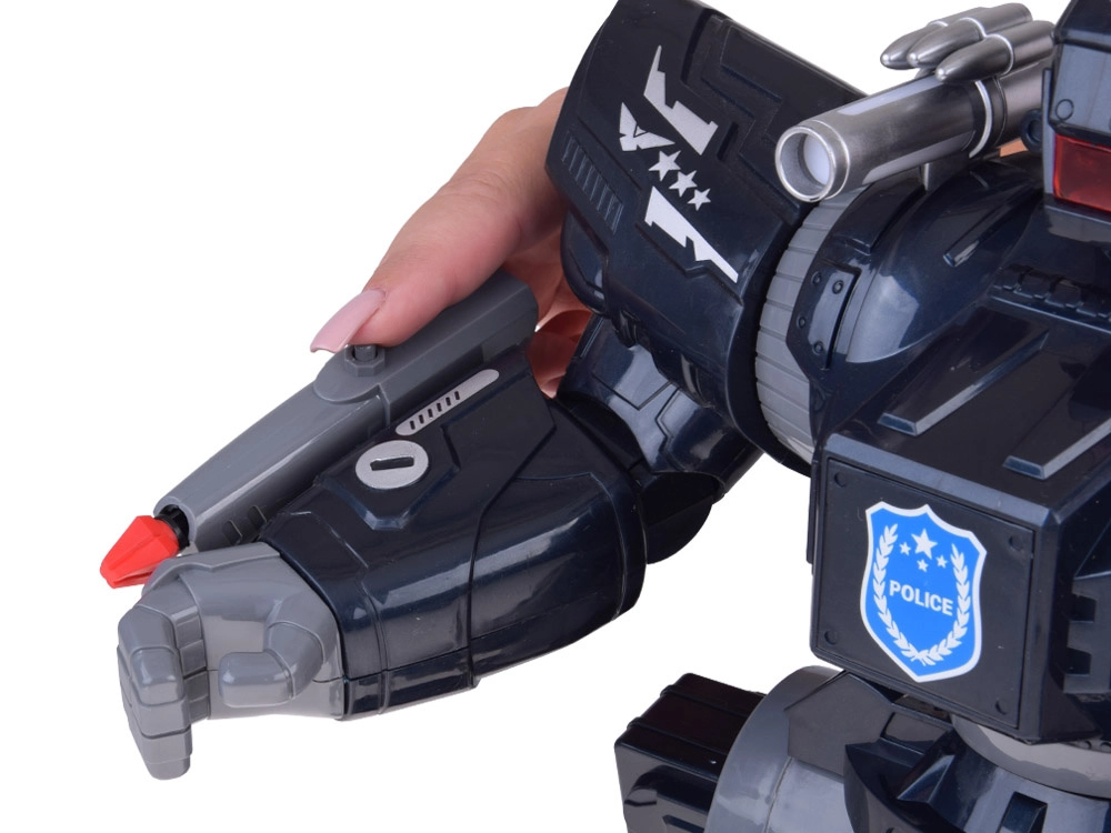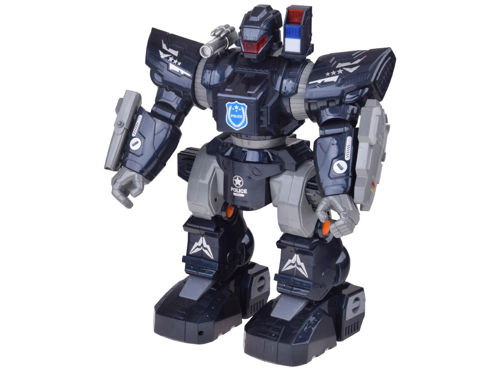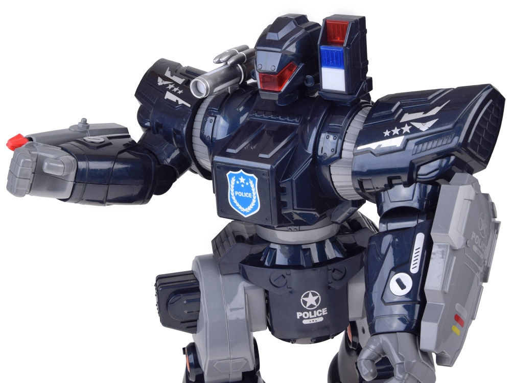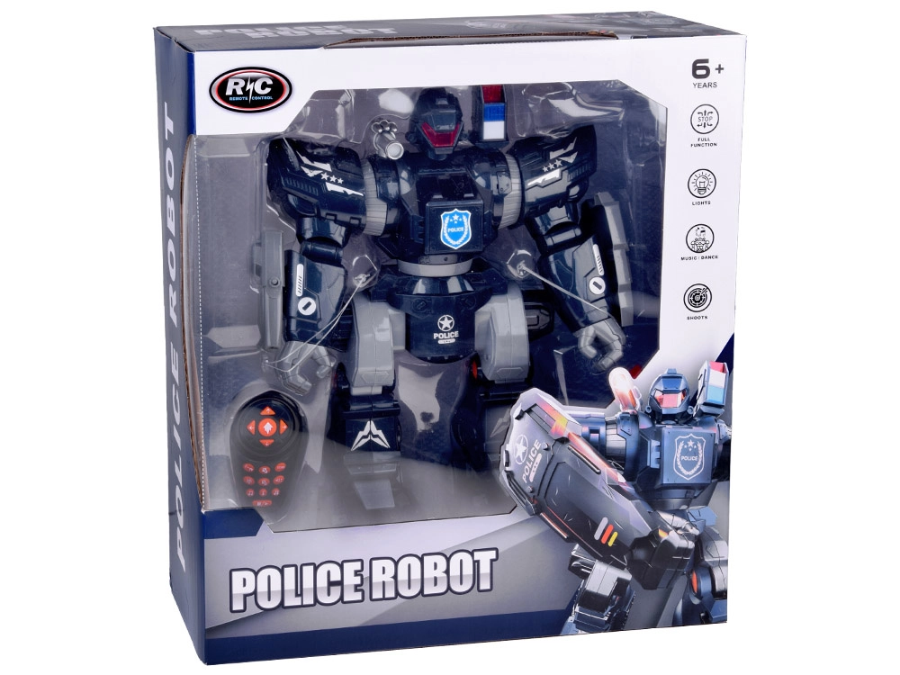 Robotul polițist interactiv cu telecomandă aduce distracție plină de acțiune pentru copii. Se poate deplasa, roti, dansează pe melodii, are efecte luminoase, efecte sonore și tragere cu proiectile moi. Datorită dimensiunilor mari aprox. 38 × 30 × 16 cm, volumului reglabil și modului demo, este un cadou perfect pentru micii fani ai poliției și roboților.