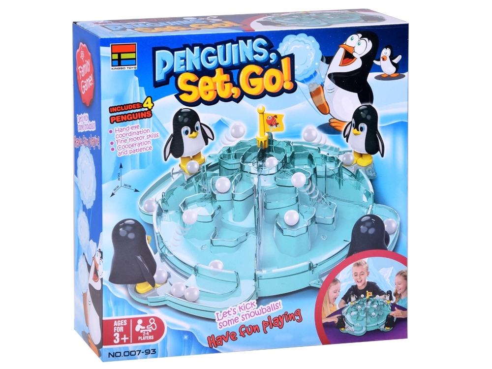 Un joc de familie distractiv cu pinguini adorabili, în care contează reacția rapidă, precizia și cronometrul potrivit. Apasă capul pinguinului și lansează bulgărele de zăpadă spre muntele de gheață – cine își umple primul platformele sau nimerește vârful cu steguleț, câștigă! Ideal pentru 2–4 jucători și copii de la 3 ani.