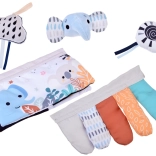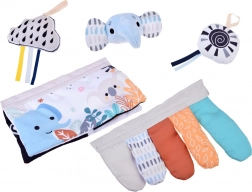 - materiale foșnitoare, piese cu sunete, panglici textile și texturi diferite