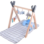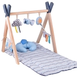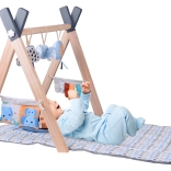 Cadru stabil în A din lemn natural, cu mai multe puncte de prindere pentru jucării, oferă o bază fermă și sigură pentru joaca zilnică acasă sau în călătorii.