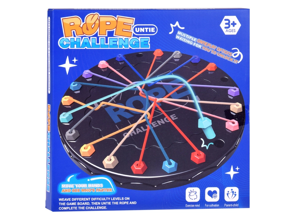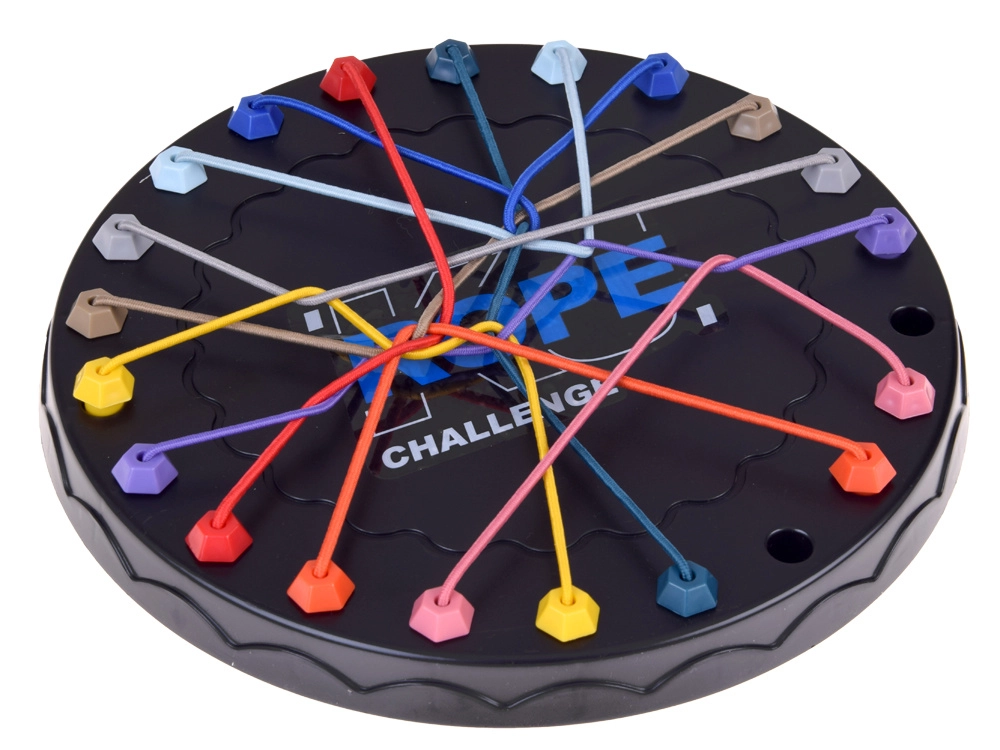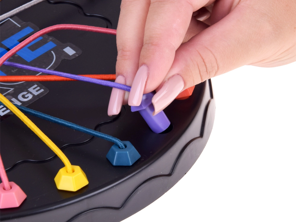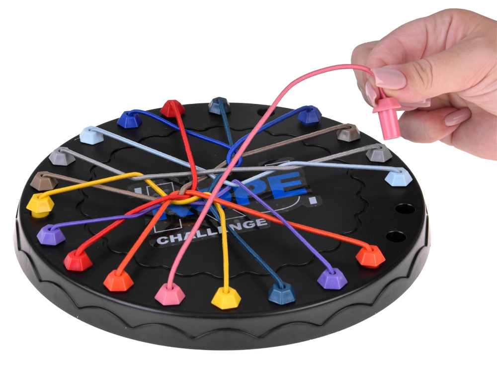 Descoperă un antrenament distractiv pentru creier cu o tablă circulară, pioni colorați și șnururi elastice. Jucătorii creează împletituri prin conectarea punctelor și apoi caută ordinea corectă a pașilor pentru a le elibera și desface complet. Jocul oferă mai multe niveluri de dificultate – de la modele simple pentru începători până la provocări complexe pentru avansați.