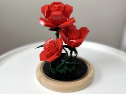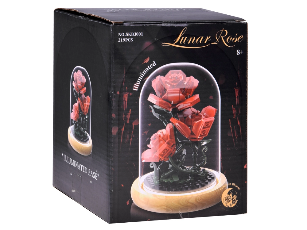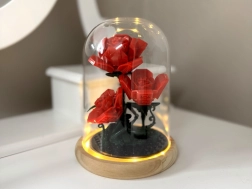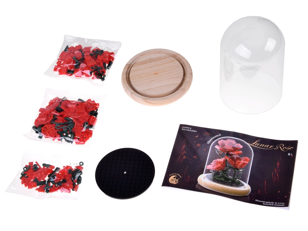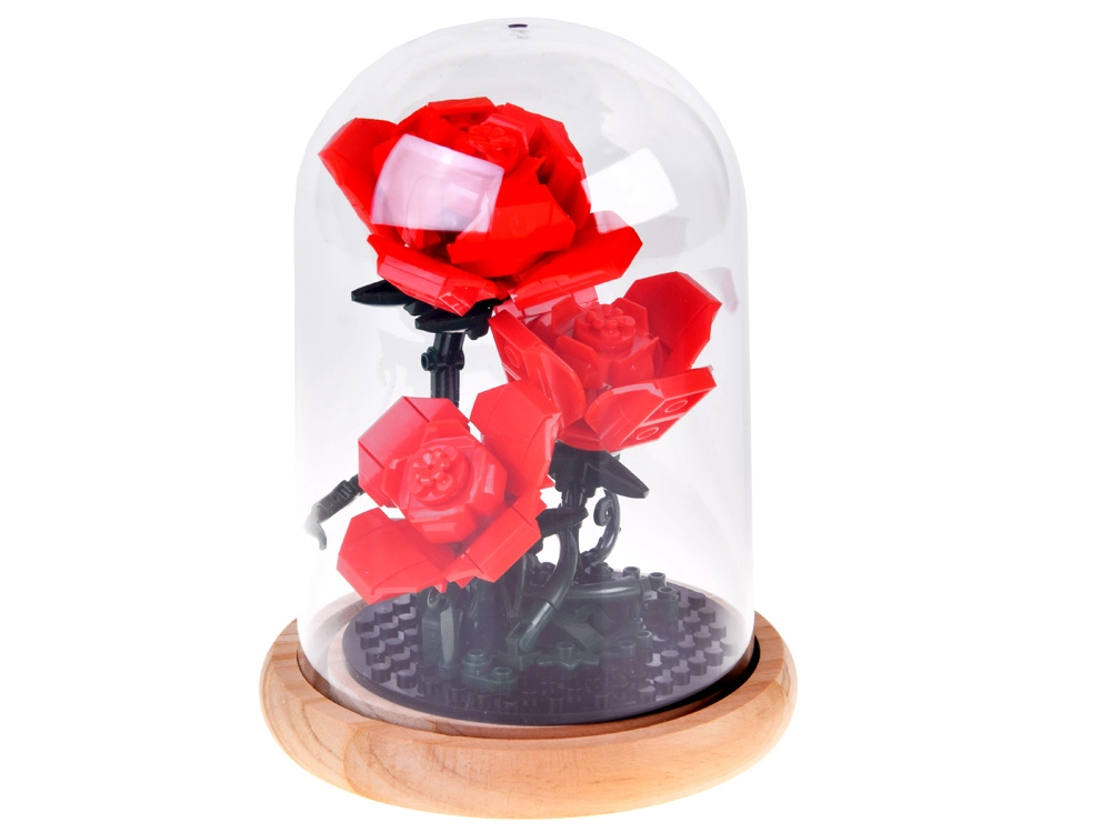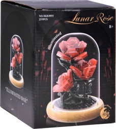 Acest set de design îmbină construcția distractivă cu efectul decorativ. Trandafirul în cupola clară pare o mică operă de artă, iar datorită iluminării LED calde se evidențiază mai ales seara. Piesele din plastic rezistente se îmbină ușor și își păstrează forma, astfel încât modelul final este stabil și gata de expunere.
