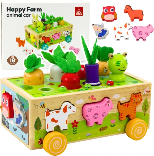 Descoperă învățarea prin joacă cu jucăria din lemn Fermă pe roți, care îmbină sortatorul de forme, clopoțeii, viermișorii magnetici și figurinele cu animale. Susține motricitatea fină, gândirea logică, percepția auditivă și coordonarea mișcărilor – totul în spiritul învățării Montessori și al jocului plin de bucurie.