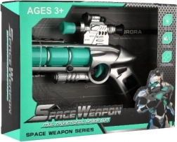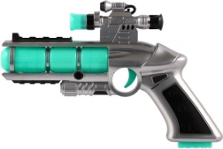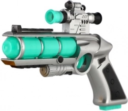 Pentru toți micii iubitori de arme, prezentăm pistolul futurist pentru copii, care este nu doar estetic atrăgător, ci și plin de funcții. După inserarea a 2x baterii AA, pistolul se aprinde și emite sunete autentice. Această experiență interactivă asigură ore de distracție: Datorită designului modern în combinația de argintiu și turcoaz, pistolul este nu doar funcțional, ci și stilat.