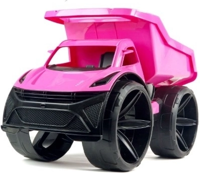 Autobasculanta roz MAXIMUS îmbină aspectul atractiv cu funcționalitatea bine gândită. Datorită plasticului robust, dar ușor, este ușor de manevrat chiar și de copiii mai mici, iar bena mobilă permite încărcare și descărcare realistă. Liniile futuriste, bara față lată cu grilă tip fagure și „farurile” montate oblic subliniază caracterul modern al jucăriei.