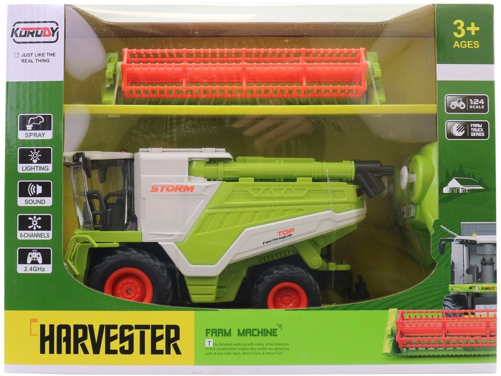 Datorită telecomenzii simple, deplasarea și manevrarea sunt intuitive și potrivite pentru începători. Cadoul ideal pentru micii iubitori de utilaje agricole – combineul este gata de acțiune imediat după despachetare.