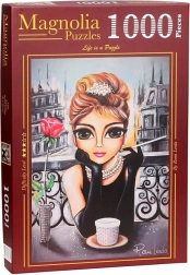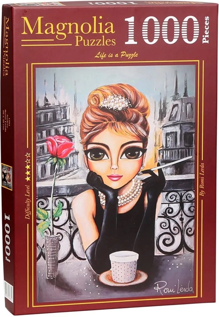 Puzzle stilat cu motiv Audrey pentru adulți și împătimiții de puzzle mai exigenți. Conține 1000 de piese și, după asamblare, creează o imagine elegantă cu dimensiunile de aproximativ 48 × 68 cm. Ideal pentru relaxare, antrenarea concentrării și ca decor pentru interior. 1000 de piese, motiv Audrey, dimensiune 48 × 68 cm.