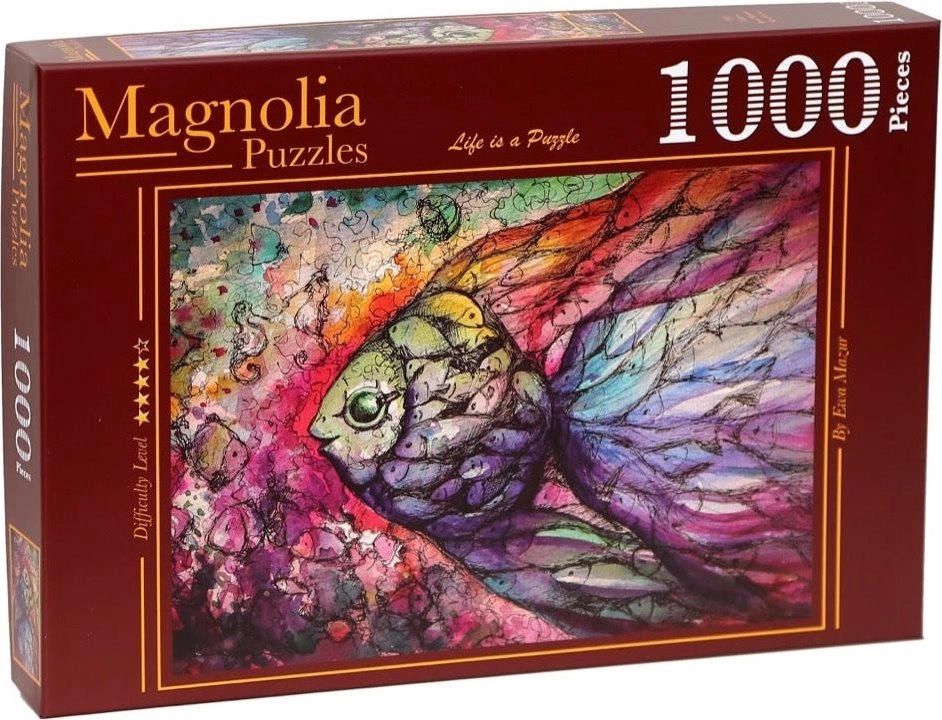 Descoperiți farmecul lumii subacvatice cu un motiv de pești care aduce culori vibrante și detalii fine. Puzzle-ul de 1000 de piese oferă o provocare plăcută, dezvoltă concentrarea și este o modalitate excelentă de a vă deconecta de la ecrane.