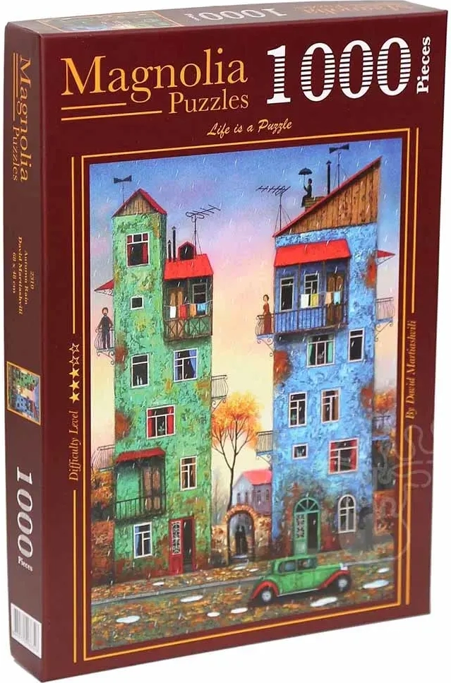 Descoperiți farmecul atmosferei de toamnă cu un puzzle având motivul unei ploi line. Acest puzzle cu 1000 de piese îi va încânta atât pe începători, cât și pe pasionații experimentați. Datorită execuției precise, tiparului clar și culorilor intense, imaginea finală este o decorațiune de interior impresionantă.