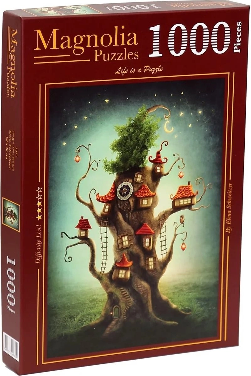 Bucură-te de ore întregi de distracție asamblând ilustrația detaliată cu tema casei fanteziste din copac. Puzzle-ul cu 1000 de piese este o provocare excelentă pentru adulți și copiii mai mari, dezvoltând răbdarea, concentrarea și orientarea spațială.